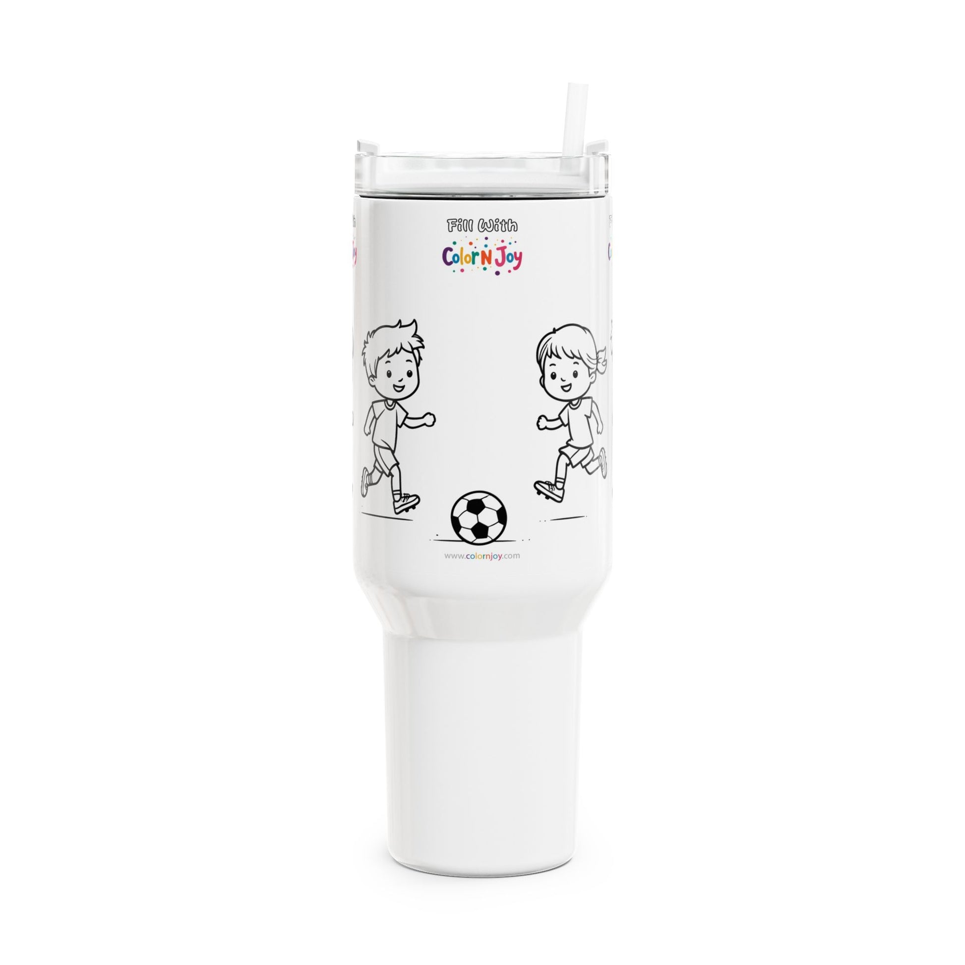 "Buddy Football" Color-Your-Own Travel Mug – 40oz Kids Sports Friendship Tumbler | Color N Joy