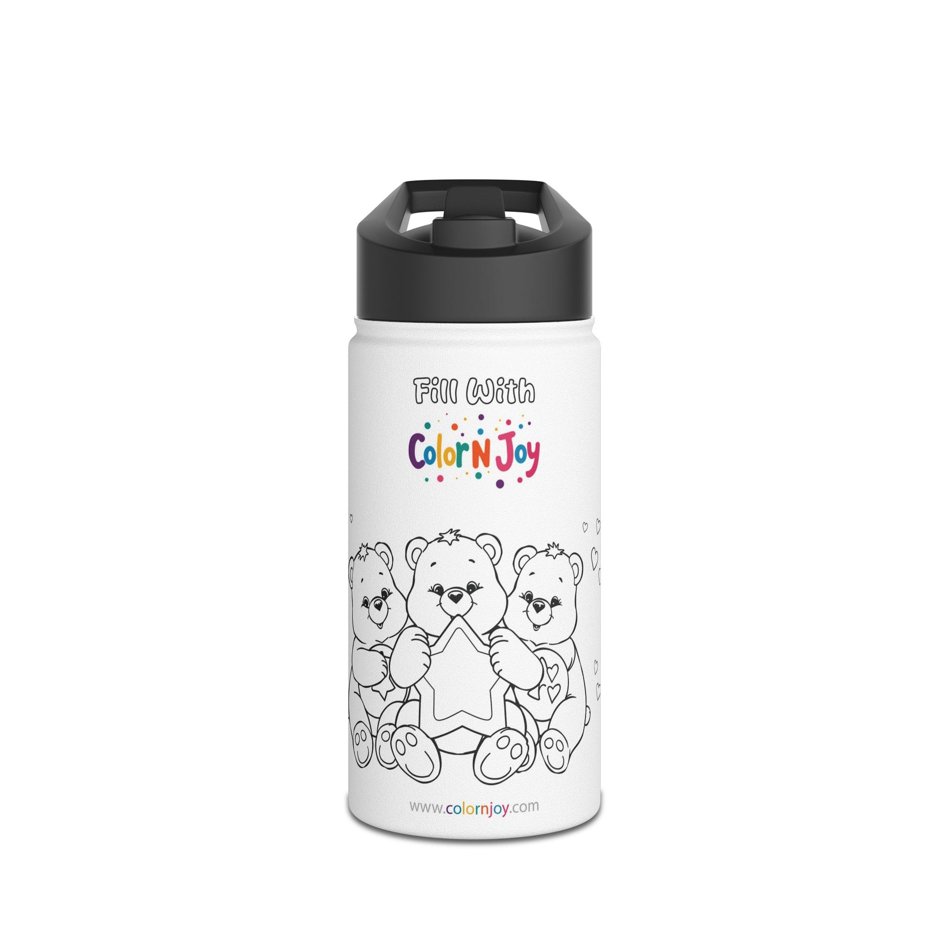 Care Bears Coloring Water Bottle | Eco-Friendly Stainless Steel Drinkware | Reduces Screen Time