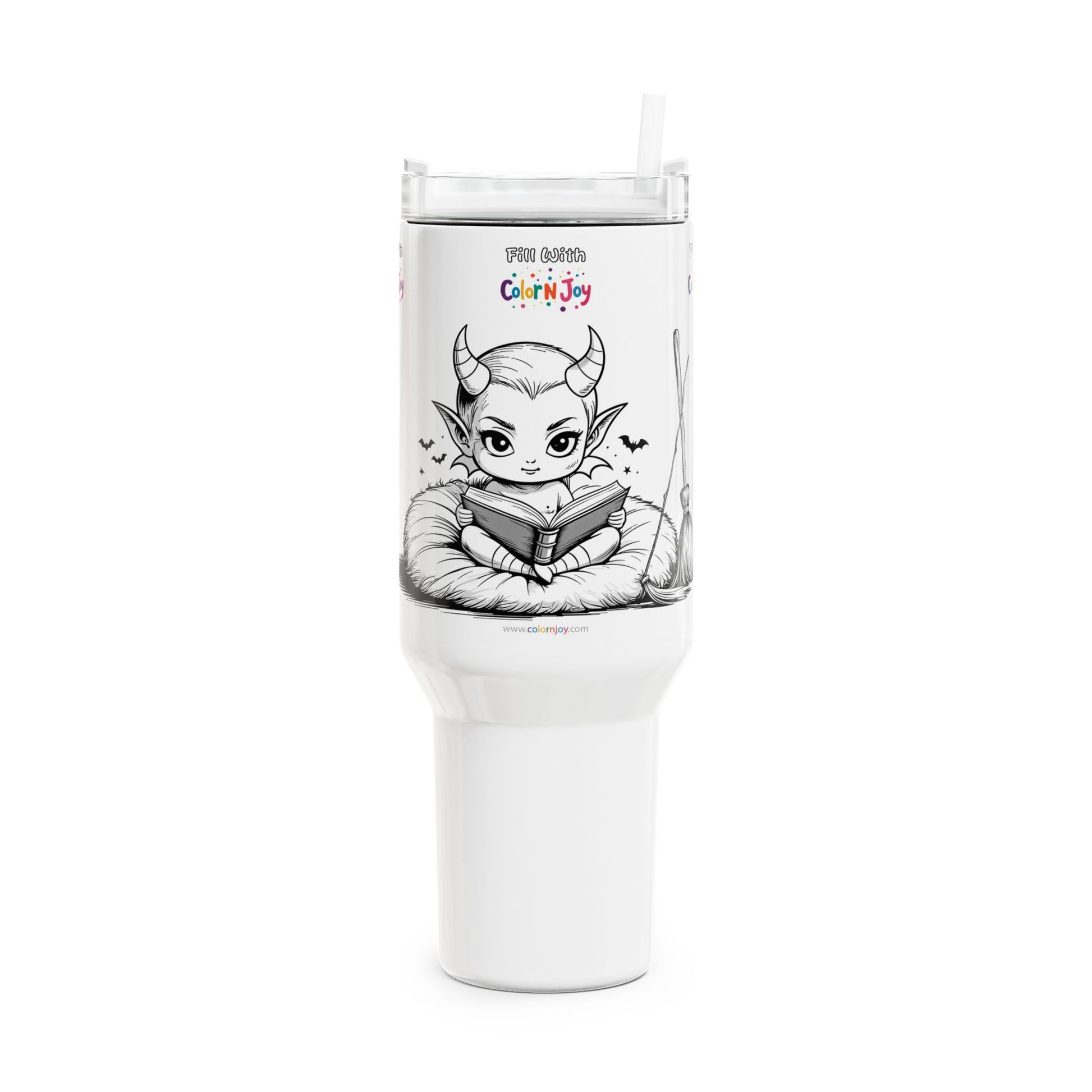 Meet the Bookworm Witch Halloween Colorable Travel Mug – 40oz Creative Kids Tumbler | Color N Joy