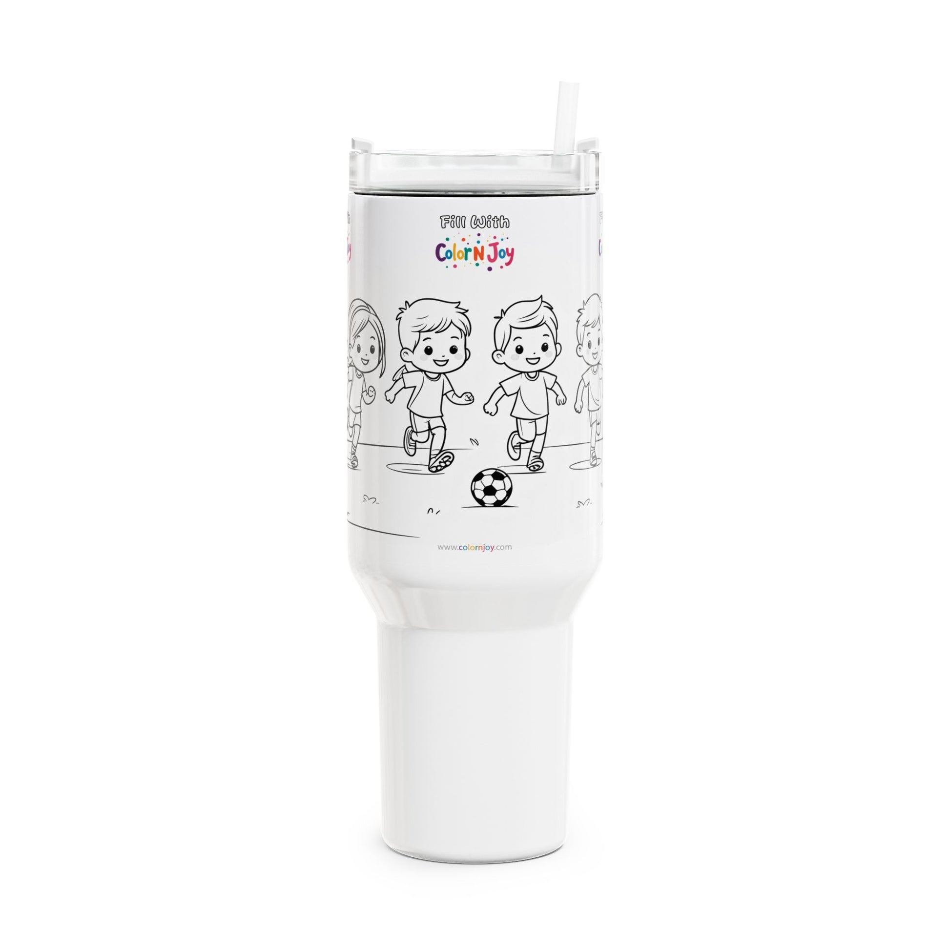 Team Victory Football Tumbler – 4 Kids Playing with Colorful Symbols | 40oz